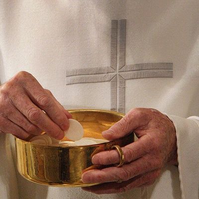 The Real Presence of Christ in the Eucharist is a central dogma of the Catholic faith: “The power of the words and the action of Christ, and the power of the Holy Spirit, make sacramentally present under the species of bread and wine Christ’s body and blood, his sacrifice offered on the cross once for all” (CCC 1353).